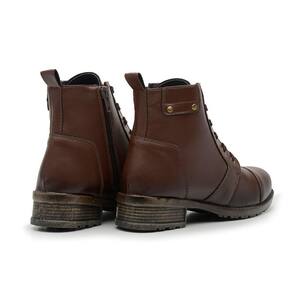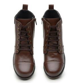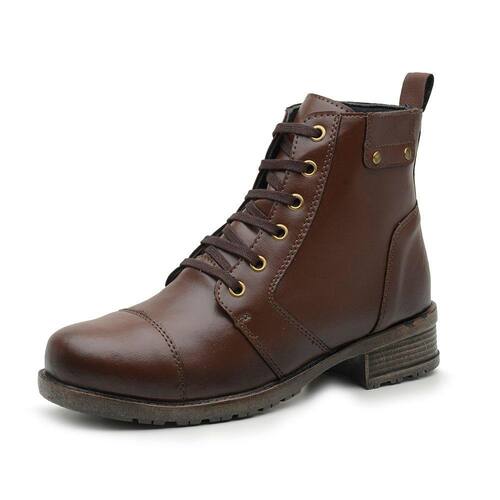 Bota Coturno Feminino Casual Cano Curto Salto Baixo Sola Borracha Com Ziper e Cadarço - 33 - Marrom