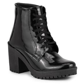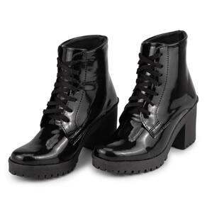 Bota Coturno Feminino com Salto Confortável Linda Verniz Preto Leve - Preto - 34
