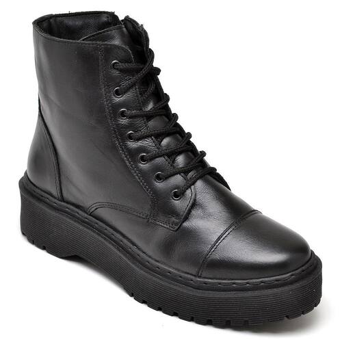 A bota coturno, é confeccionada em couro, possui forro respirável, palmilha super macia oferecendo muito conforto, o solado é de borracha.