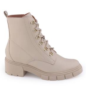 Bota Coturno 23-11122 tem cabedal fabricado em material sintético liso com detalhe em costuras, tem como detalhe passadores de cor metalizada e a logo da marca na lingua. É um modelo confortável, seu fechamento é através cadarços arredondados com passadores e furos. Sua palmilha interna é fixa, macia e revestida em material têxtil apresentando a logo da marca. O solado tratorado, possui aproximadamente 4cm de altura traseiro e 1,5cm de altura frontal, é confortável e traz segurança ao caminhar. Seu solado possui frisos para maior segurança.