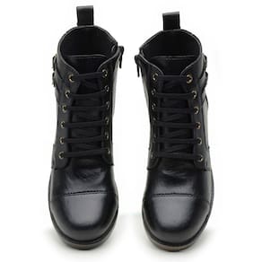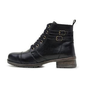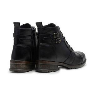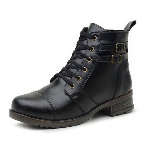 Bota Coturno Feminino Salto Baixo Cano Curto Detalhe Fivela Lateral Macia Confortavel - 39 - Preto