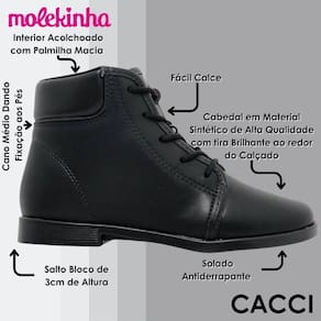Bota Coturno Infantil Menina Conforto Casual Molekinha possui um design maravilhoso e estiloso, além de ser muito versátil, você poderá transitar entre calças, saias e vestidos. Sem precisar abrir mão do conforto e mantendo o estilo!