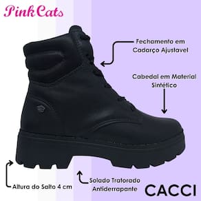 Além disso, o salto de 4 cm dá um toque elegante e moderno, sem abrir mão do conforto essencial para o uso infantil. Leve, prática e super estilosa, essa bota é a escolha certa para quem busca um visual autêntico e versátil, acompanhando desde produções mais casuais até combinações cheias de atitude. A Pink Cats une o charme da infância com o estilo das tendências atuais, entregando o melhor dos dois mundos em um único calçado.