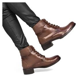 Bota Coturno Lisa M&D Store Bico Redondo Fecho em Cadarço - 35 - Marrom