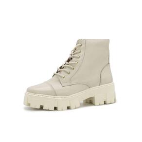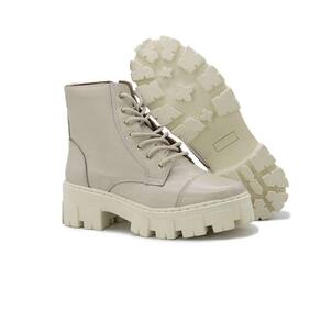 Bota Coturno Militar de Couro Feminina Plataforma Cano Medio Cadarço Palmilha Conforto Macia - 36 - Bege médio