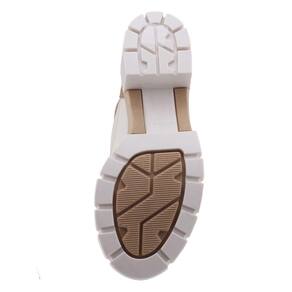 Bota Coturno Tratorada Moleca 5338.107 é um modelo que está em alta em cor Off White e detalhes tom Avelã, apresenta cano baixo com punho em material sintético macio e fechamento por cadarço largo com passadores de metal dourado. É um lindo modelo com o cabedal fabricado em material sintético napa Berlim tendo como detalhe costuras aparentes, esta bota é confortável com salto médio. A bota é toda forrada internamente proporcionando maior conforto, sua palmilha é fixa, macia e revestida. A bota traz um bom encaixe ao pé, seu bico é arredondado e o salto possui 5cm de altura e uma elevação frontal de 1,5cm. Seu solado é tratorado com frisos para maior segurança.