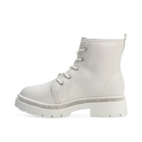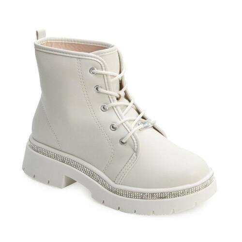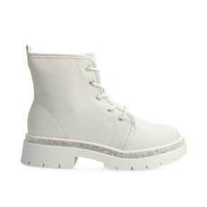 Nome: Bota Coturno Molekinha MK24-21822. Gênero: Menina. Indicado Para: Dia a dia. Estilo da Peça: Casual - Moda. Material Externo: Alternativo. Material Interno: Têxtil macio. Detalhe: Fita com aplicação de strass na entressola e puxador traseiro. Fechamento: Cadarço com plaquinha metalizada da marca. Palmilha: Forrada e macia. Altura do Cano: 11 cm. Circunferência: 24 cm. Tipo de Solado: Levemente tratorado. Solado: Borracha antiderrapante. Peso do Produto: 832 g (o peso varia de acordo com a numeração). Garantia do Fabricante: Contra defeito de fabricação. Origem: Nacional. Código Produto: 04070271. Marca: Molekinha.