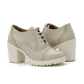 Bota Coturno Tratorada Feminina Couro Salto Medio Cano Curto Cadarço Macia - 36 - Bege médio