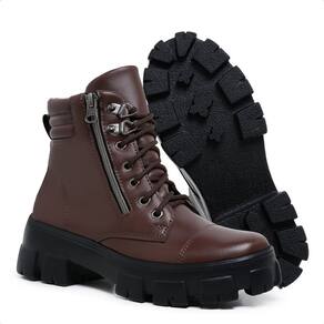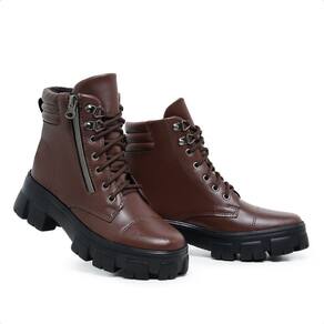 Bota Coturno Tratorado com Zíper Vertical Cano Curto Marrom