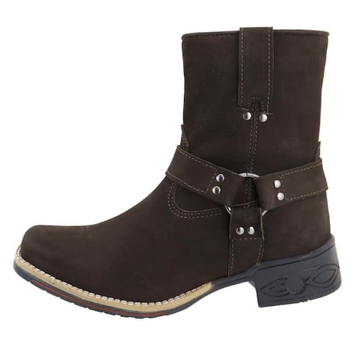 Bota Country Couro Cano Médio Aplicaçoes Argola Lateral Sola Borracha Costurada Palmilha EVA - Marrom - 40