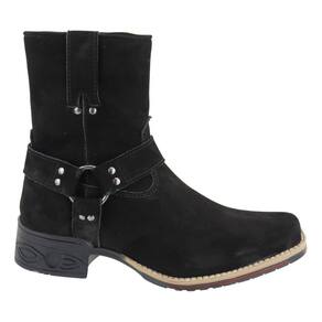 Bota Country Couro Cano Médio Aplicaçoes Argola Lateral Sola Borracha Costurada Palmilha EVA - Preto - 35