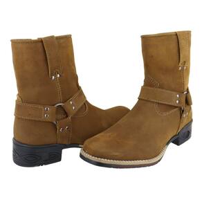 Bota Country Couro Cano Médio Aplicaçoes Argola Lateral Sola Borracha Costurada Palmilha EVA - 36 - Mostarda