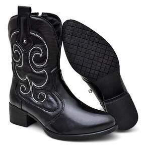 A Bota Texas confeccionada em couro, é ideal para a mulher moderna que busca a união de conforto, estilo, resistência e proteção para o seu dia a dia. Possui solado emborrachado , sendo seu material resistente e antiderrapante para maior durabilidade, concedendo ao calçado mais flexibilidade e conforto ao caminhar. Seu material interno é em têxtil, e sua palmilha é macia trazendo maior conforto.