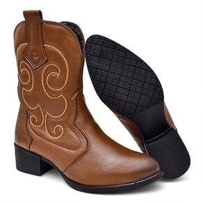 A Bota Texas confeccionada em couro, é ideal para a mulher moderna que busca a união de conforto, estilo, resistência e proteção para o seu dia a dia. Possui solado emborrachado , sendo seu material resistente e antiderrapante para maior durabilidade, concedendo ao calçado mais flexibilidade e conforto ao caminhar. Seu material interno é em têxtil, e sua palmilha é macia trazendo maior conforto.