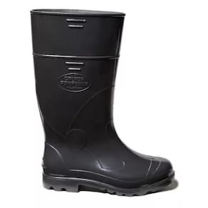 Calçado ocupacional tipo bota cano longo, confeccionado em PVC, impermeável, na cor preta, solado em PVC