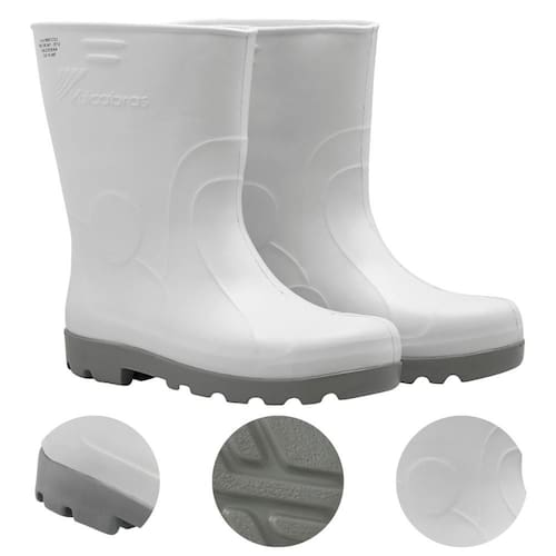 Proporciona proteção aos pés e pernas do usuário contra riscos de natureza leve, agentes abrasivos e escoriantes, bem como contra umidade proveniente de operações com uso de água, produtos químicos e agentes térmicos (frio) (I).