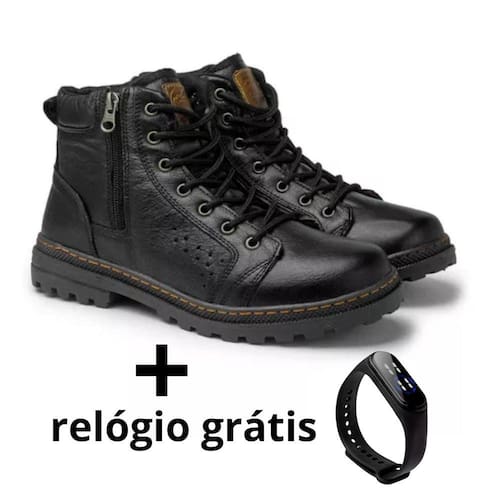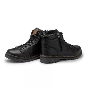 Conta com fechamento por cadarço e zíper que facilita o calce.