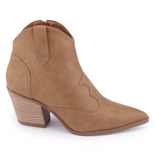Bota feminina Country de salto médio Delvaz 1262 é um modelo de cano baixo e está super em alta. É uma linda bota Western Texana de bico afinado com o cabedal fabricado em material sintético com acabamento liso com recortes e costuras, é toda forrada internamente proporcionando conforto, seu fechamento é por zíper na lateral interna facilitando o calçe, tem a palmilha fixa, macia e revestida. A bota traz um bom encaixe ao pé, seu salto médio é grosso com acabamento fachetado fabricado em material sintético possui 5,5cm de altura e o solado possui frisos para maior segurança.