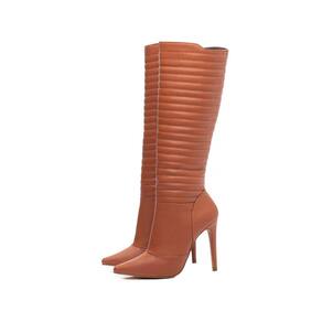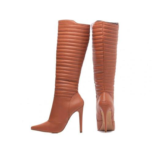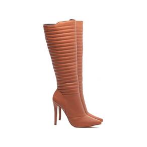 Bota Feminina Bico Fino Cano Alto Salto Fino 12cm Marrom Torricella - 38 - Marrom