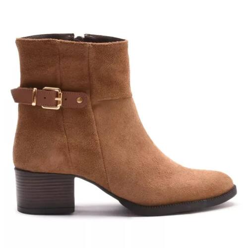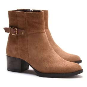 Bota Feminina Camurça Cano Curto Fivela Confortável - 40 - Marrom Cacau