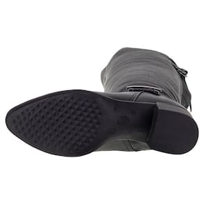 A Bota Feminina Cano Alto Bottero é confeccionada em Couro Burnish com acabamento em costura, forro interno em têxtil, palmilha em PU e solado em borracha antiderrapante com salto de seis centímetros. O cano mede quarenta e cinco centímetros de altura por quarenta centímetros de circunferência.