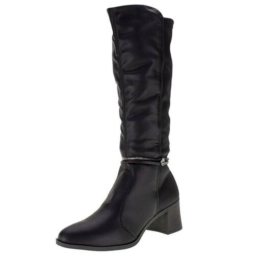 A Bota Feminina Cano Alto Dakota é confeccionada em material de alta qualidade com acabamento em costura, fechamento por zíper lateral, forro interno em têxtil, palmilha em PU e solado em borracha antiderrapante com salto de sete centímetros. Esse modelo possui cano de trinta e três centímetros de altura por quarenta e um centímetros de circunferência.