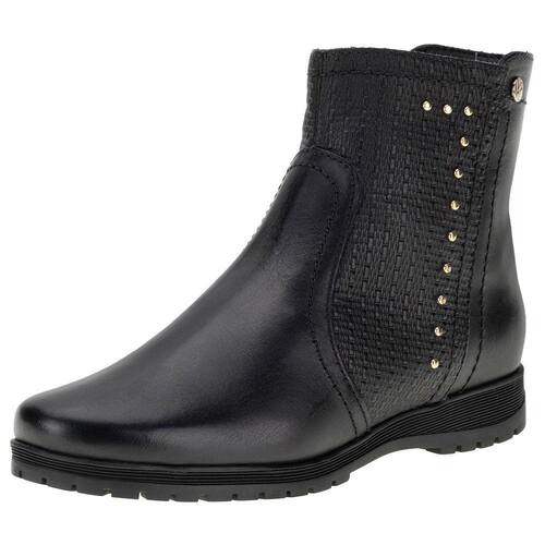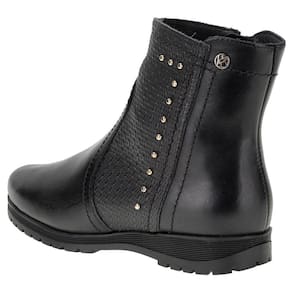 A Bota Feminina Cano Baixo Bottero é confeccionada em Couro com acabamento em costura, fechamento por zíper lateral, forro em têxtil, palmilha em PU e solado em borracha antiderrapante. O cano mede aproximadamente catorze centímetros de altura por trinta e dois de circunferência.