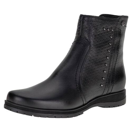 A Bota Feminina Cano Baixo Bottero é confeccionada em Couro com acabamento em costura, fechamento por zíper lateral, forro em têxtil, palmilha em PU e solado em borracha antiderrapante. O cano mede aproximadamente catorze centímetros de altura por trinta e dois de circunferência.