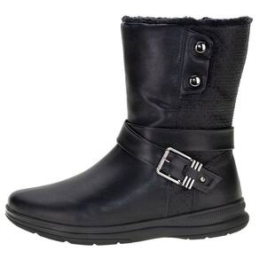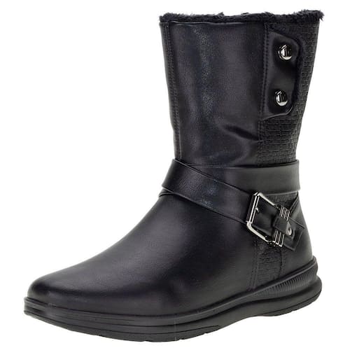 A Bota Feminina Cano Baixo ComfortFlex é confeccionada em Vets Vegetal com acabamento em costura, fechamento por zíper lateral, forro interno em têxtil, palmilha em PU e solado em borracha com salto de três centímetros e meio. Esse modelo possui cano de vinte centímetros com circunferência de trinta e sete centímetros.