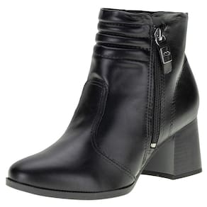 A Bota Feminina Cano Baixo Dakota é confeccionada em material nobre com acabamento em costura, fechamento por zíper lateral, palmilha em PU e solado em borracha antiderrapante com salto de sete centímetros. O cano mede onze centímetros de altura por trinta e um centímetros de circunferência.