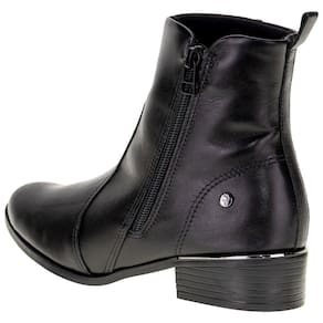A Bota Feminina Cano Baixo Ramarim é confeccionada em Napa de alta qualidade com acabamento em costura, fechamento por zíper lateral, forro interno em têxtil, palmilha em PU e solado em borracha antiderrapante com salto de três centímetros. Esse modelo possui cano de treze centímetros de altura por trinta e um centímetros de circunferência.