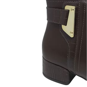 A bota possui salto bloco de quatro centímetros com detalhe croco que combina estilo e estabilidade, perfeito para oferecer segurança ao caminhar sem abrir mão do charme. O solado é antiderrapante, ideal para diversas superfícies, proporcionando mais aderência e firmeza em cada passo. O acabamento do cabedal entrega um equilíbrio entre a elegância do brilho sutil e a resistência necessária para o uso prolongado.