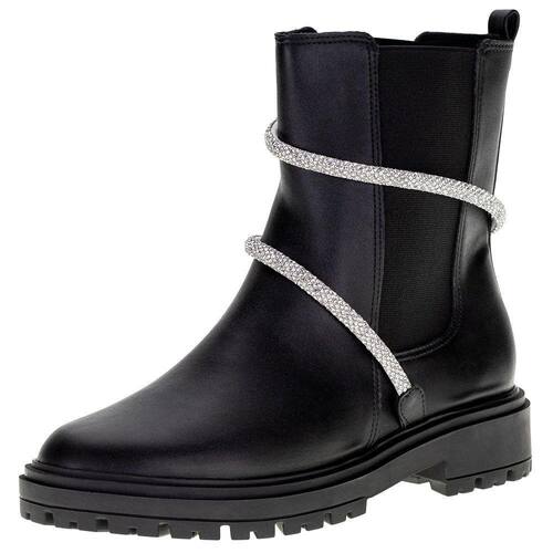 A Bota Feminina Cano Baixo Vizzano é confeccionada em Napa com acabamento em costura, forro interno em têxtil, palmilha em PU e solado em borracha. Esse modelo possui cano de dezessete centímetros de altura por trinta e dois centímetros de circunferência.