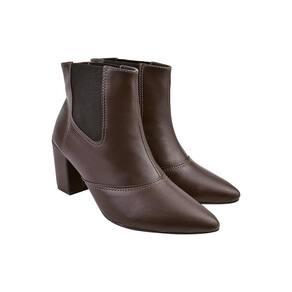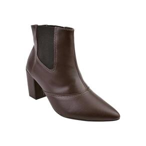 Bota Feminina Cano Curto Bico Fino Chelsea Salto Grosso - 37 - Marrom Cacau