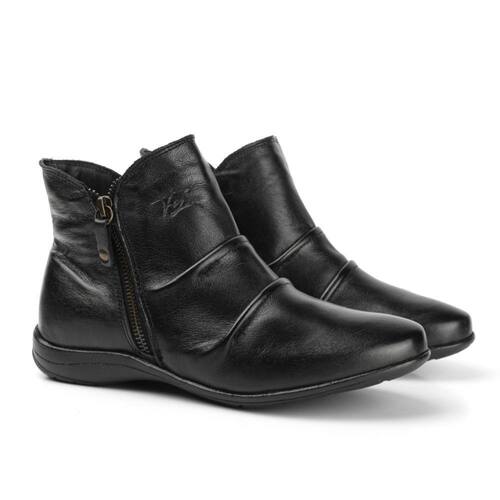 Bota Feminina Cano Curto Couro Confortável Antiderrapante - 34 - Preto
