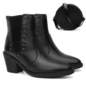 Modelo fashionista, esta bota da Valentina K + Bolsa Roma foi confeccionada para garantir durabilidade e proteção. O modelo confeccionado em couro e com material interno em tecido, permite maior conforto para produções do dia a dia. Com salto baixo, cano curto e fecho em zíper, inspira ousadia e atitude. Aposte na peça com calça jeans e camisa. Este modelo é pra quem busca conforto e estilo ao mesmo tempo! Bolsa confeccionada em PVC