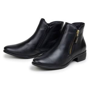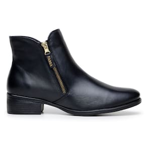 Bota Feminina Cano Curto Couro Zíper Lateral Reforçado Bota Coturno Casual Dia a Dia - 34 - Preto