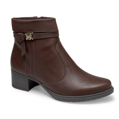 O visual minimalista dessa bota destaca o detalhe dobrado na parte superior do cano, com uma textura aveludada que confere um toque de elegância e originalidade, além de ser leve. A tira com aplicação metalizada da logo da marca adiciona um charme extra ao modelo. O salto bloco de 4,5 cm garante conforto e estabilidade ao caminhar, enquanto o cano curto de 14 cm de altura e a circunferência de 24,20 cm proporcionam um ajuste perfeito aos pés.