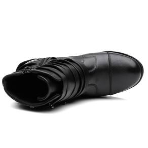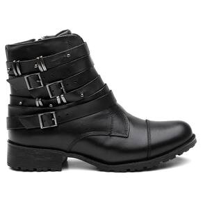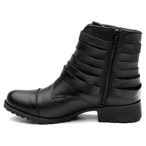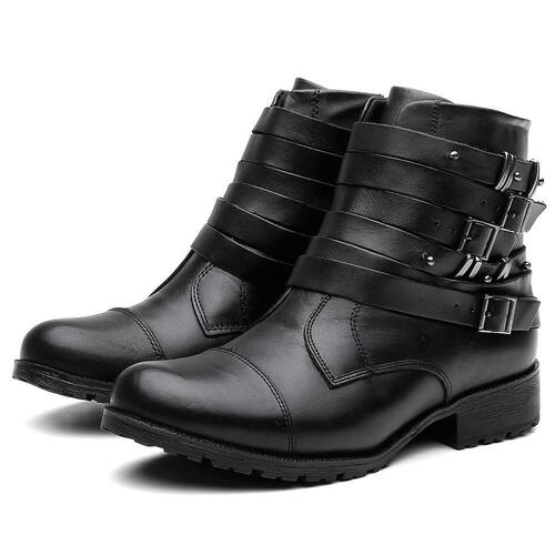 Bota Feminina Cano Curto Salto Baixo Couro Casual Fivela - 36 - Preto