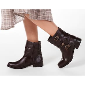 Bota Feminina Cano Curto Salto Baixo Couro Confortável - 38 - Marrom