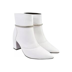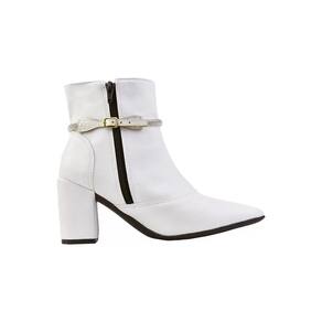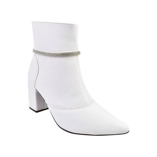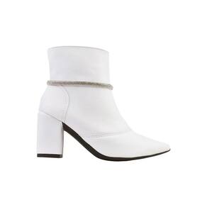 Bota Feminina Cano Curto Salto Bico Fino Casual Strass - 40 - Branco