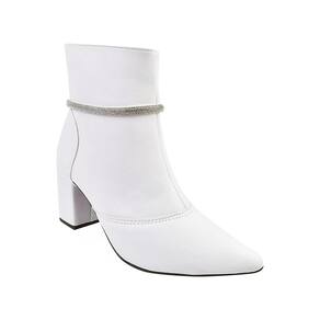 Bota Feminina Cano Curto Salto Bico Fino Casual Strass - 35 - Branco