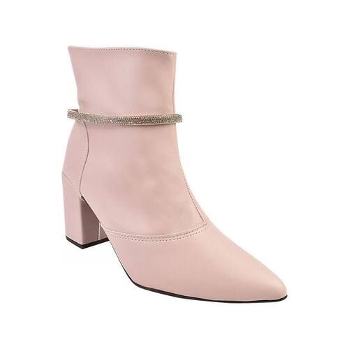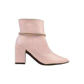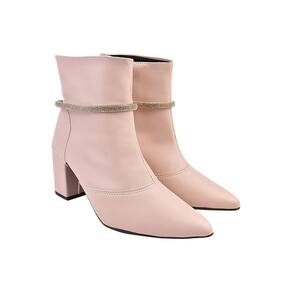 Bota Feminina Cano Curto Salto Bico Fino Casual Strass - 40 - Rosa Claro