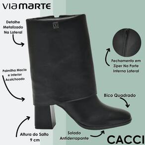 A bota social Via Marte é uma peça de impacto que eleva qualquer produção com sua proposta autêntica e sofisticada. O bico quadrado, aliado ao salto alto grosso, imprime personalidade ao visual e garante uma base firme para o dia a dia — uma combinação perfeita entre elegância e conforto. O cano médio reforça o apelo moderno da peça, ideal para mulheres que buscam versatilidade com estilo.