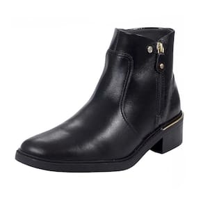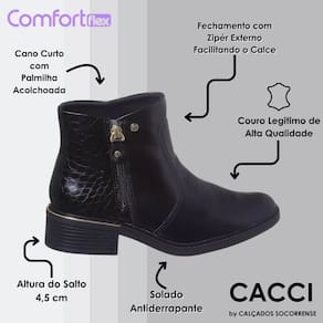 Bota Feminina Casual Cano Baixo Couro Comfortflex - Preto - 40