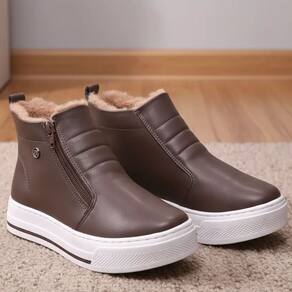 Confortável, quentinha e cheia de estilo. Possui zíper lateral, facilitando seu calce e forração em pelo na cor gelo, deixando-a mais confortável ainda.