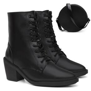 Bota Feminina Coturno Cano Baixo + Bolsa Roma Moderna - 37 - Preto