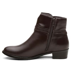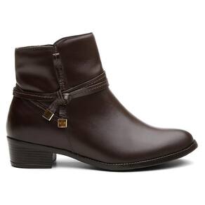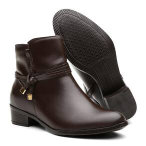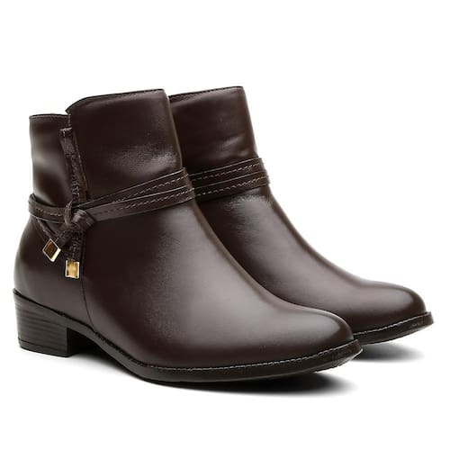 Bota Feminina Coturno Couro Cano Curto Salto Baixo Conforto - 34 - Marrom Cacau