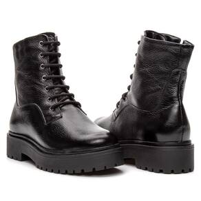 Bota Feminina Coturno Couro Tratorada Cadarço Moderna Casual - 38 - Preto