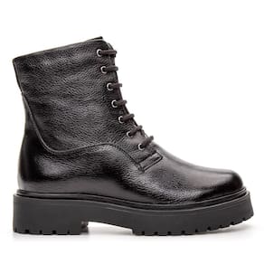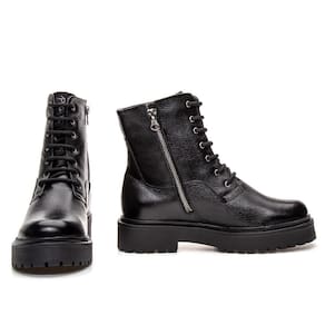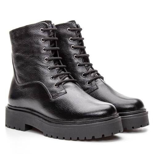 Bota Feminina Coturno Couro Tratorada Cadarço Moderna Casual - 37 - Preto